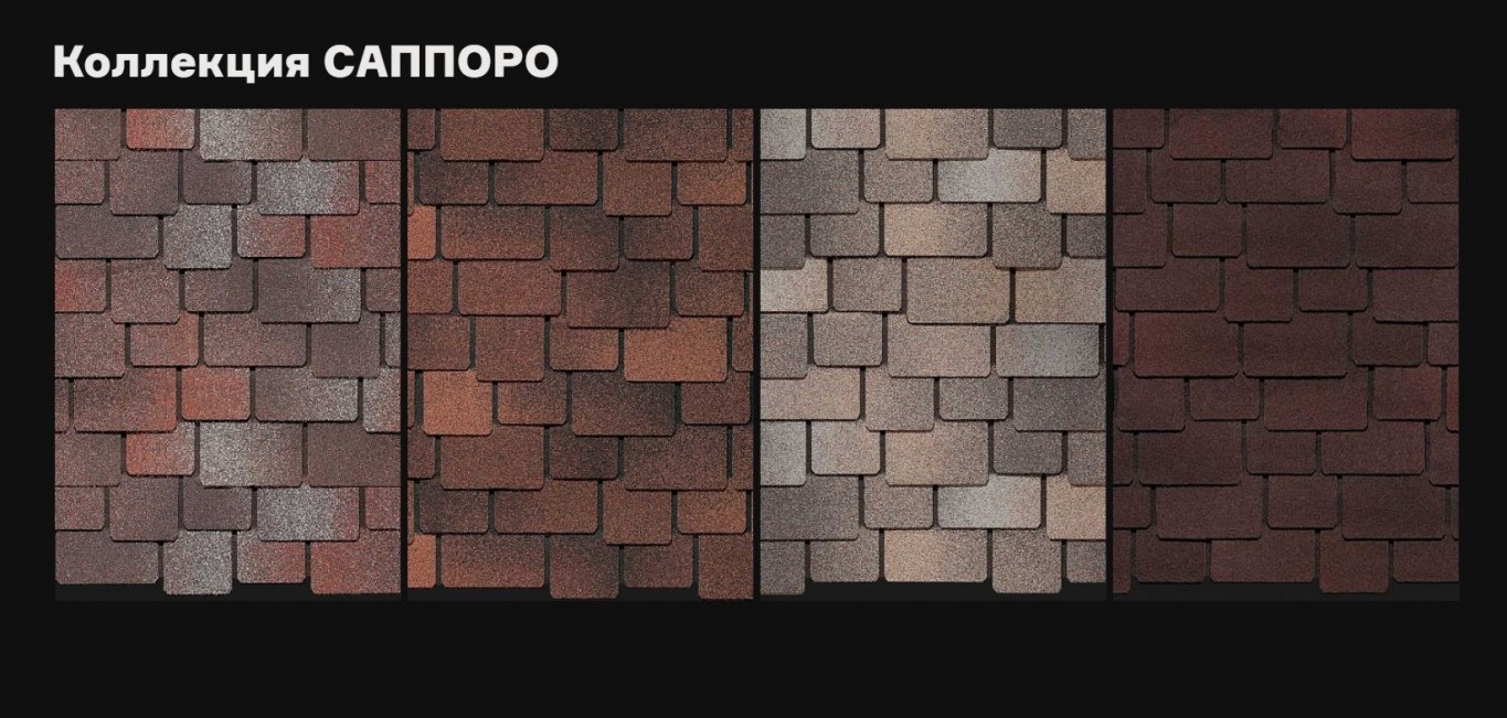 В ассортименте Дёке присутствуют уникальные запатентованные нарезки, не имеющие аналогов на российском рынке. Они представлены в таких дизайнерских коллекциях, как «САППОРО», «ЦЮРИХ», «ЖЕНЕВА» и «НИЦЦА». Особо следует упомянуть коллекцию «САППОРО», которую отличают уникальные размеры гонта с крупными лепестками, до 40% превышающими стандартные размеры. Особенно хорошо они смотрятся на больших домах и широких скатах. Укладывать большие гонты значительно легче и быстрее, что позволяет сэкономить на монтаже. Смонтированная кровля «САППОРО» - трехслойная, ведь геометрия нарезки обеспечивает коэффициент перехлёста гонтов, равный трём.